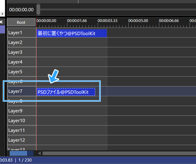 「Layer1」への配置がベストです。ほかのレイヤーにする場合は、上のレイヤーにPSDToolKit2関連のオブジェクトを置かないようにしましょう。